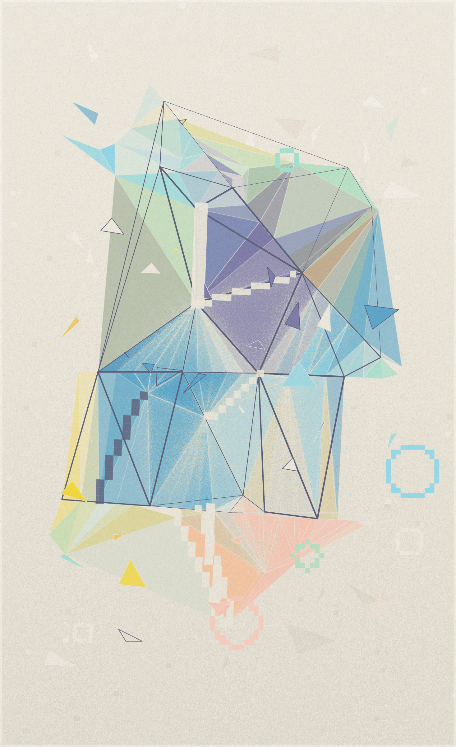 First, a base layer is created, where the colors of the palette flow in an organic pattern. On top of this, each triangle samples five key points: the center, the three vertices, and the midpoint of its longest side. The algorithm calculates an average of these values to define the triangle’s final color.
