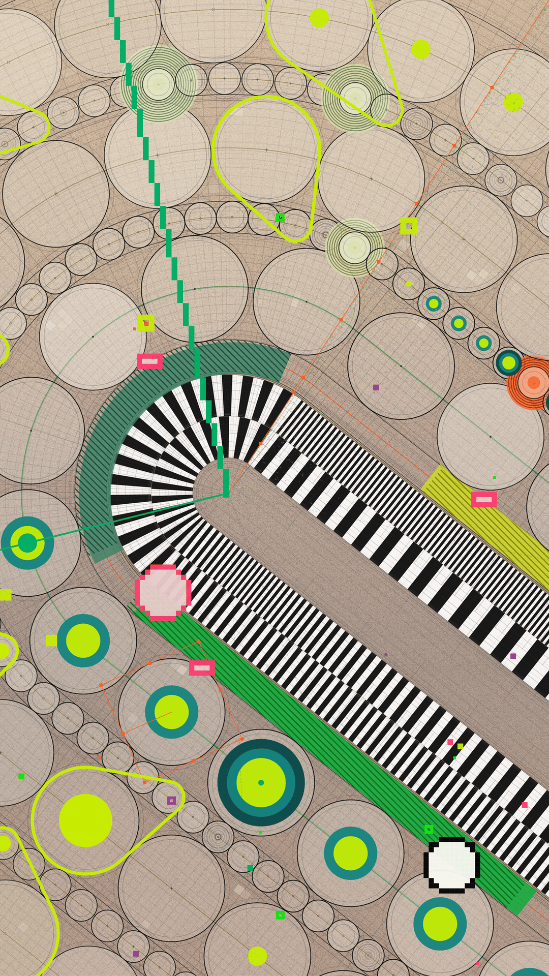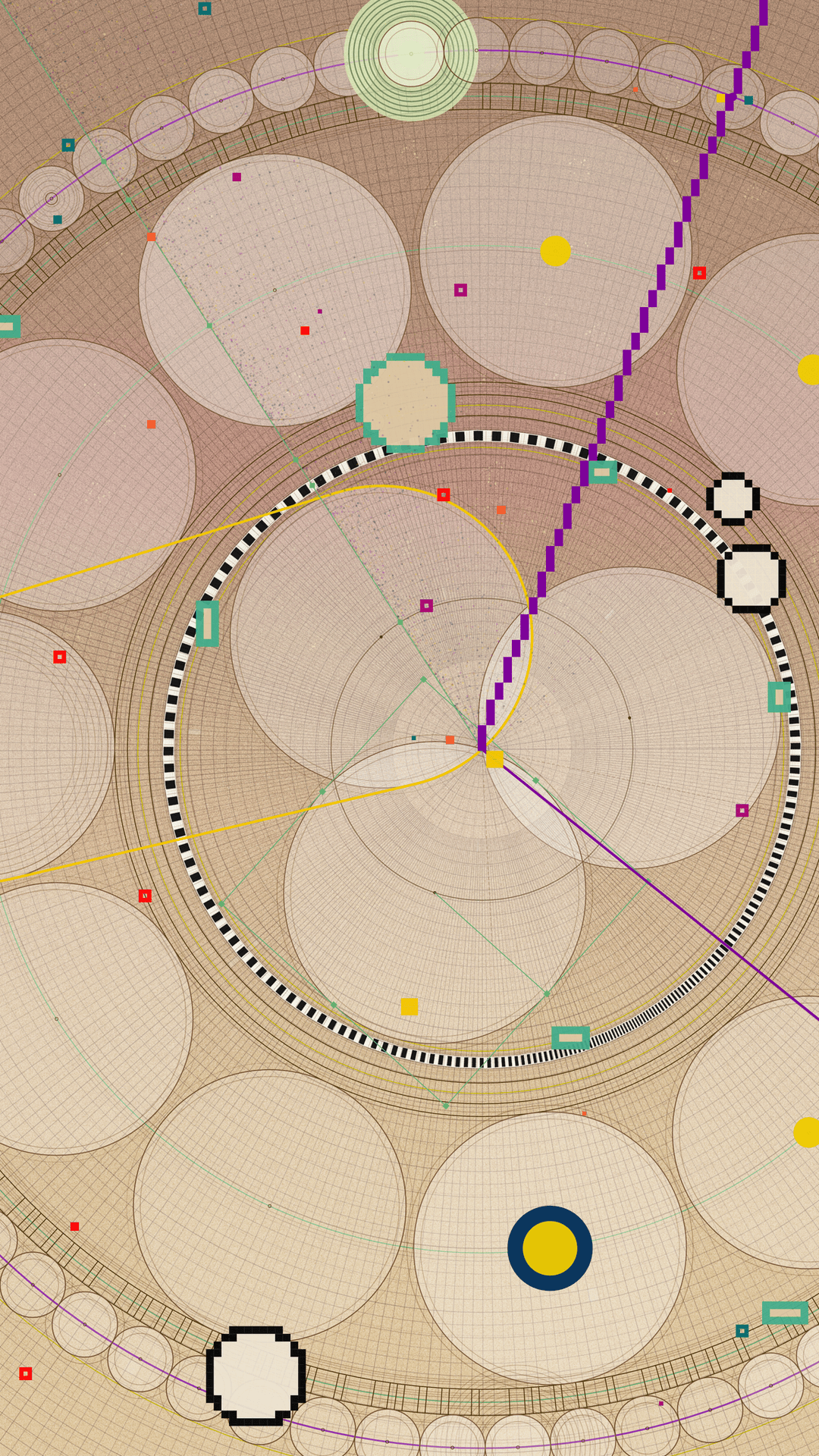 “Gift of Time” is a collection of 365 unique iterations, all created from a single algorithm. The beauty is that every time a collector mints an artwork, the code randomly generates a completely new piece that not even the artist can know in advance. The gallery below showcases test outputs that are not part of the collection, but they provide a glimpse into the algorithm's capabilities.